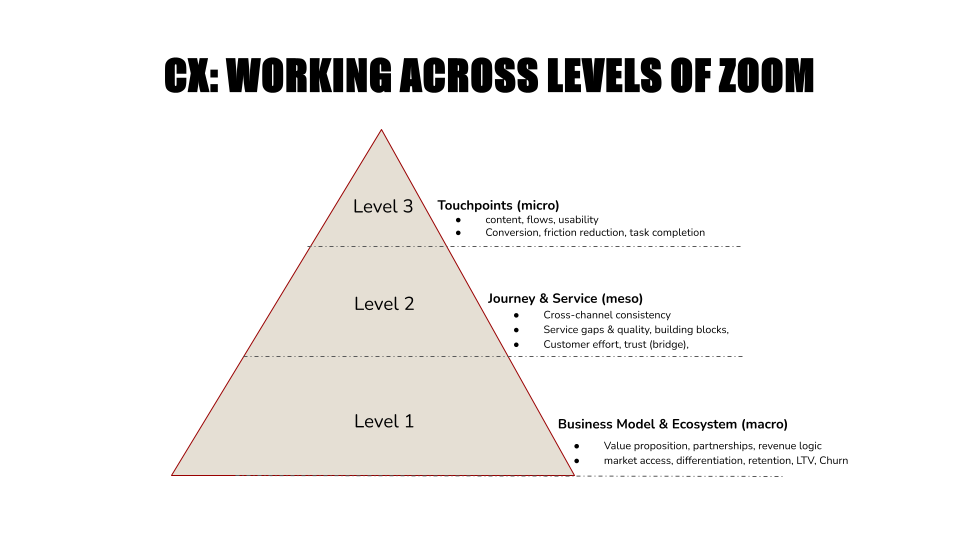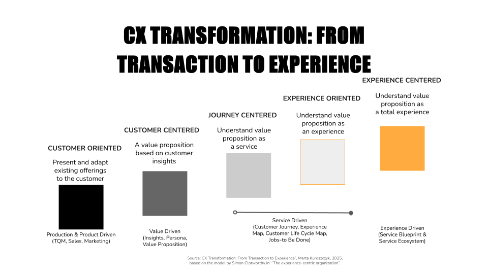 This is why my cooperations mostly started by improving products or services based on Voice of Customer. Then, we slowly shifted into understanding of the broader customer journey. Eventually, the most advanced organizations realized that experience must be designed strategicly and supported by internal capability.